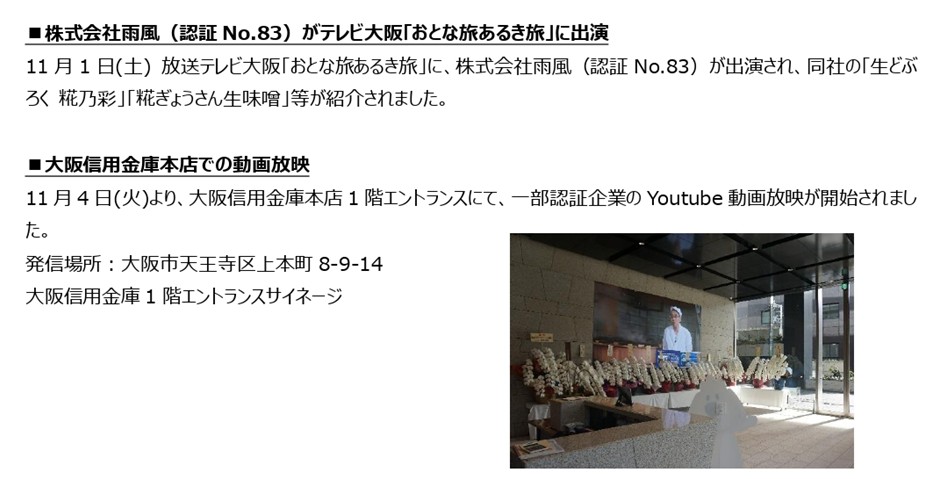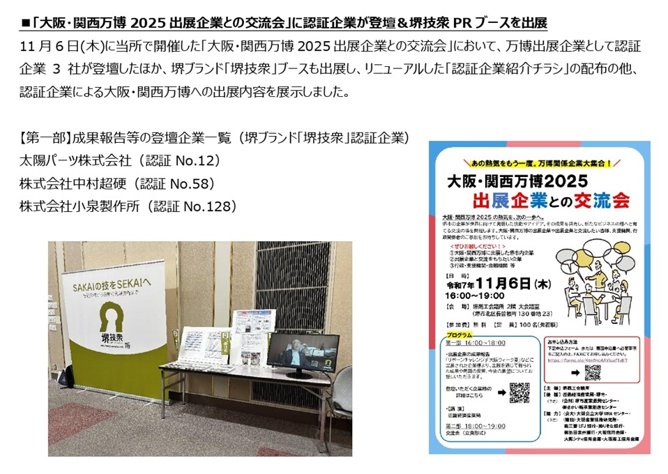 堺技衆 認証企業の動き(令和7年10~11月)